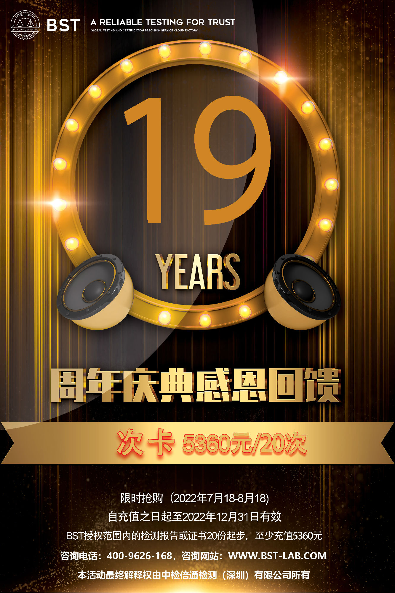 BST集團(tuán)成立19周年之際,為答謝代理商客戶多年以來的支持,特面向新老代理商推出特惠卡酬賓活動。